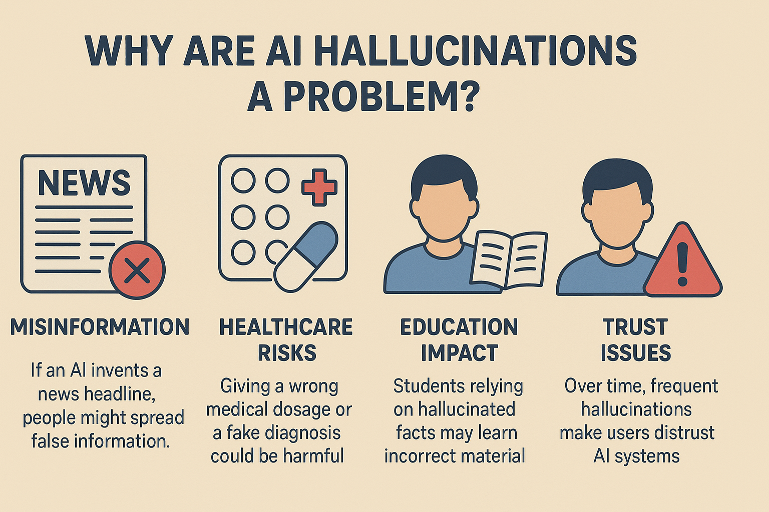 Think of it like this: if a human imagines or invents a story and presents it as fact, they’re “hallucinating” information. AI does something similar when it outputs wrong, nonsensical, or fabricated results while sounding convincing.