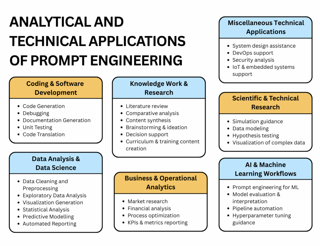 Technical and Analytical Applications of Prompt Engineering