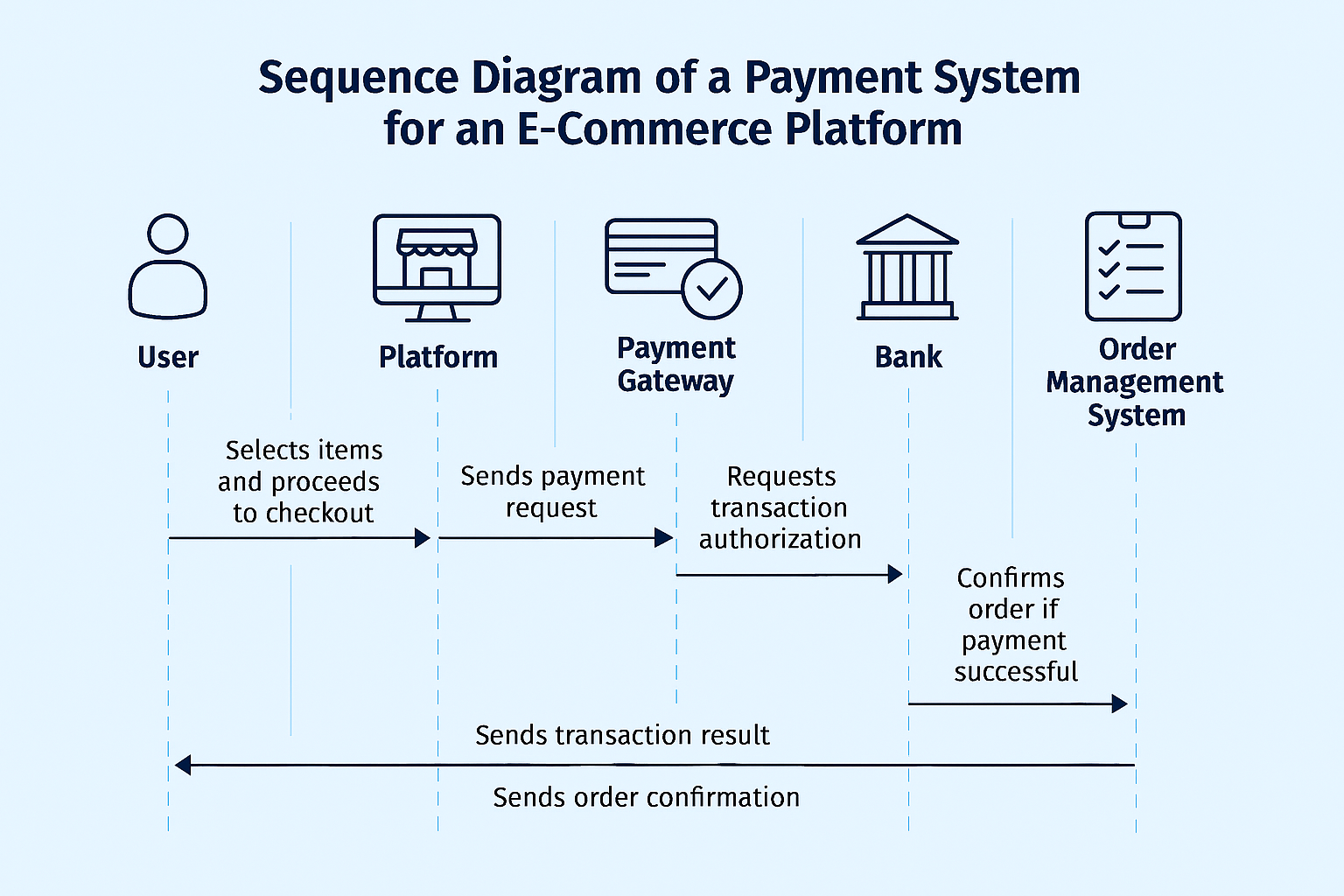 • “Draw a sequence diagram of a payment system for an e-commerce platform.”