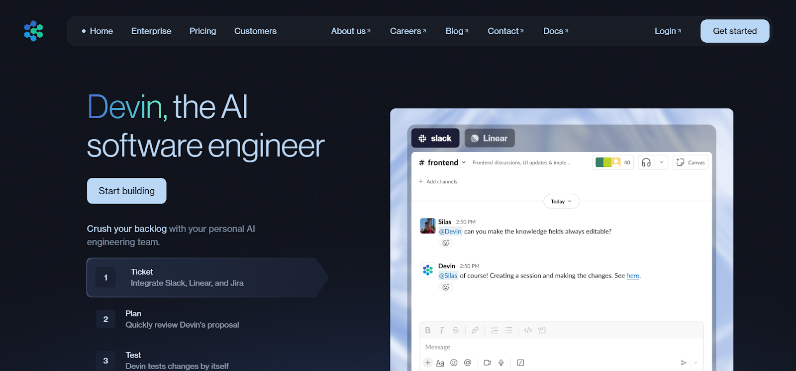 - Devin (by Cognition AI): The world’s first AI software engineer. Devin can plan an entire software project, write and debug code, run tests, and deliver a working product, acting as a full autonomous developer.