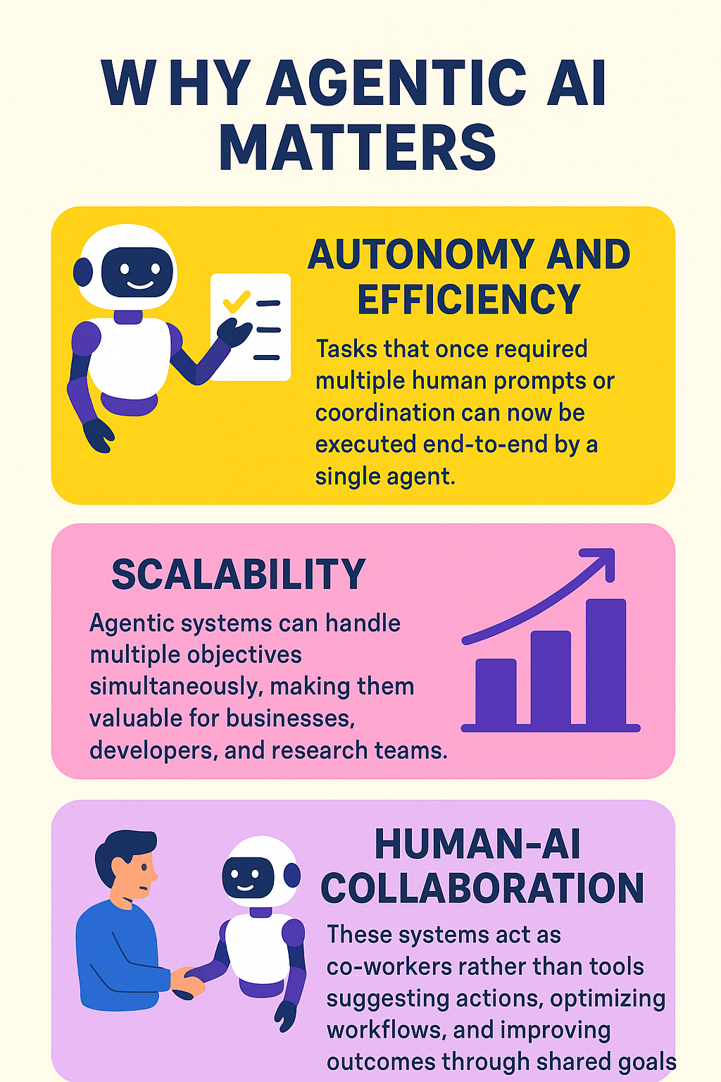 Agentic AI marks the point where machines start to take initiative. Instead of only reacting to commands, they can decide what to do next to reach a goal, much like a human would. They can break big problems into smaller parts, make decisions, and learn from what happens. This is not about creating smarter chatbots. It is about building AI systems that can think, plan, and work in complex, changing situations. These systems act with intention rather than simply following instructions.